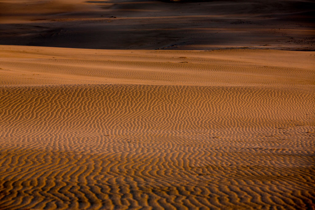 One of the three famous sand dunes in Japan - Nakatajima Sand Dunes, Hamamatsu City, Shizuoka Prefecture. This was shot in the early morning, when the oblique light makes the ripples in the sand stand out. When I post-processed the RAW image, I changed the colour temperature to emphasize the amber colour.