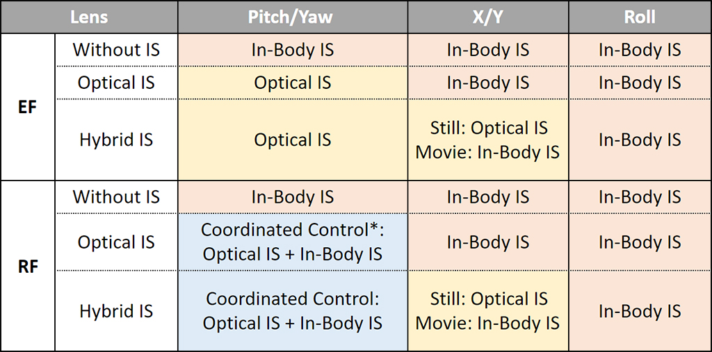 Note: Coordinated Control IS does not correct shift camera shake, which occurs when the camera is panned horizontally or vertically, or rotational camera shake, which occurs when the camera is tilted horizontally. These are corrected by In-Body IS.