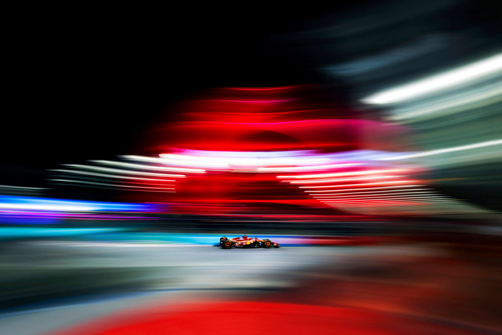 The curved panning motion in this image of Carlos Sainz driving his scarlet Scuderia Ferrari past the LED-covered Sphere in Las Vegas makes us feel like we are in a sphere! Darren aimed for a shot where the background colours of the changing LED ads on the Sphere harmonised with the car’s colours.