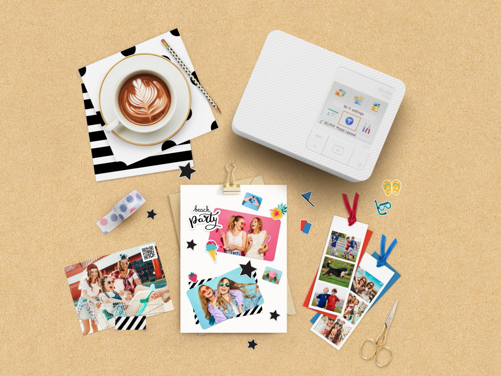 Only around the size of the postcard, the SELPHY SQUARE QX10 fits easily into a shoulder bag so you can even bring it on your trip with you for printing on the go! It prints universally flattering 1:1 square format photos onto special 2-in-1 paper—just peel off the backing to stick the photo into your travel scrapbook!