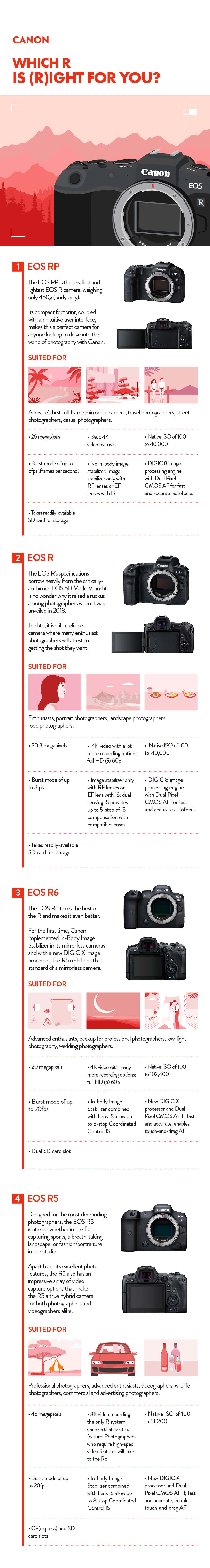 With 4 R cameras now on the market, you might wonder which one would be right for you. Read our infographic to find the one that suits you best.