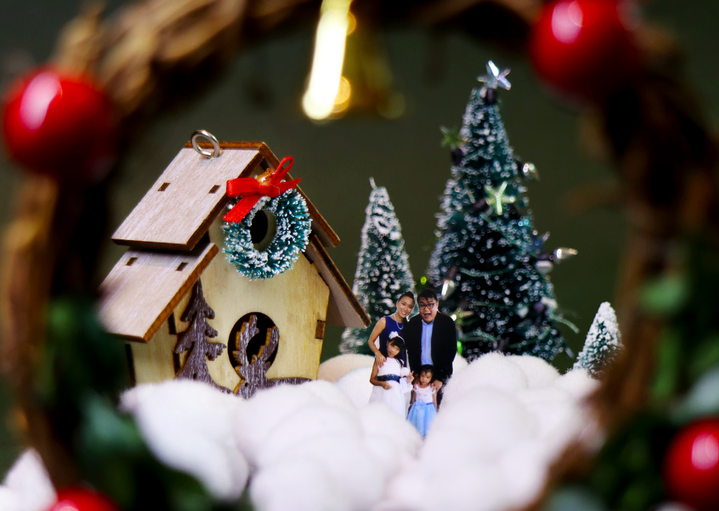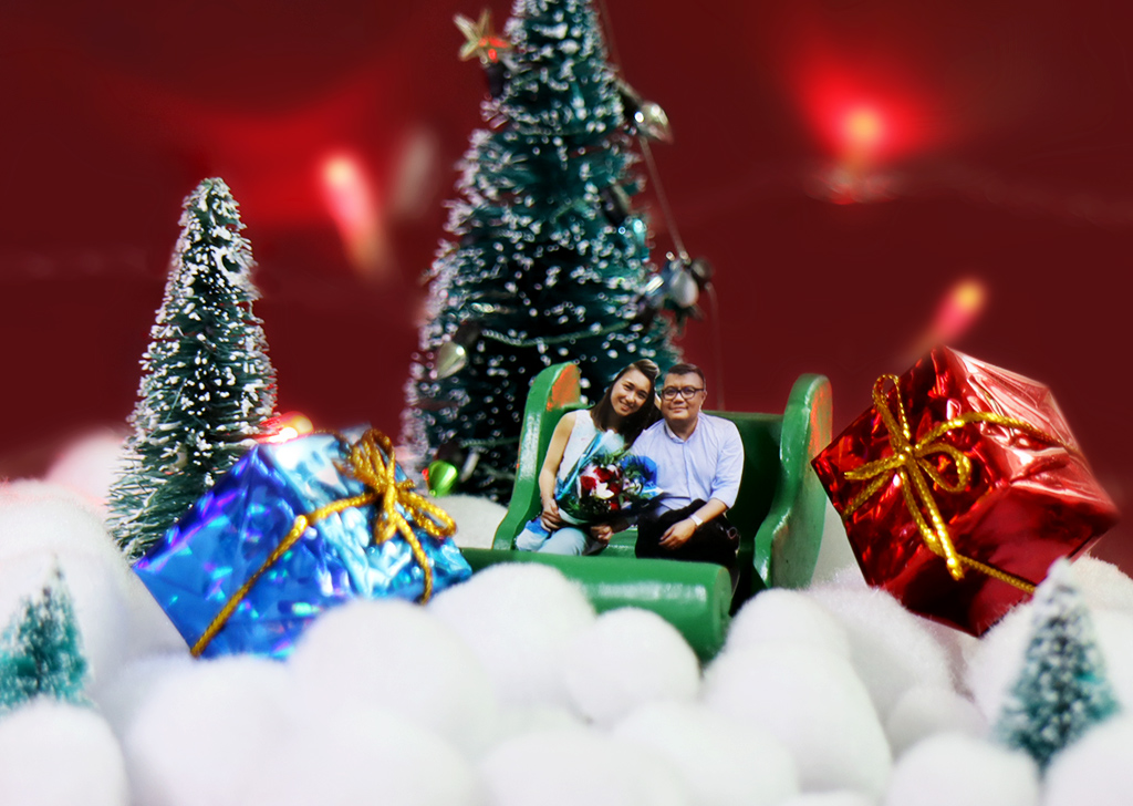 There’s something magical about this time of the year. So why not print out your favourite couple photos and transform them into something more memorable? Add Christmas touches such as a miniature sleigh, trees, and gift boxes, and use cotton balls for a snowy effect. Complete the look with fairy lights in the background to achieve beautiful bokeh against your subject.