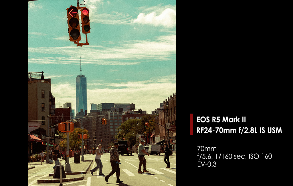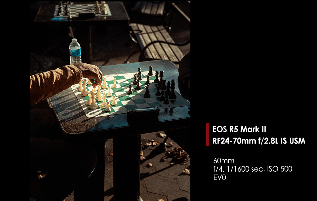 Every second counts in my run-and-gun style of street photography. The EOS R5 Mark II helps me get the sharpest shots within a millisecond, which other cameras I’ve used can’t do. Once I’ve framed the shot and released the shutter, I know my focus will be quick, tack sharp, and accurate, and that the fast 30 fps maximum continuous shooting speed would likely nail the frame I envisioned.