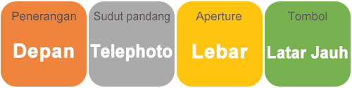 Saran: Bidik seluruh tubuh terlihat lebih tajam apabila dibidik pada sudut lebar.