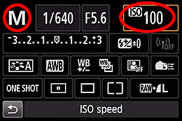 Tetapkan Mode Dial ke < M >. Tetapkan kecepatan ISO sebelumnya ke nilai preferensi Anda.