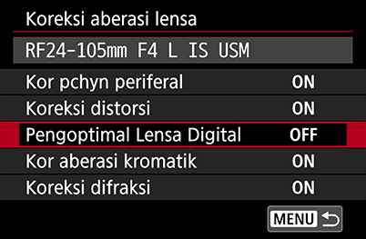 3. Anda dapat mengaktifkan dan menonaktifkan koreksi aberasi lensa dengan memilih ikon lensa.
