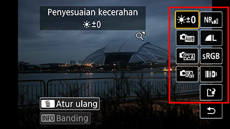 2. Semua opsi ini pada sisi kanan, memungkinkan Anda untuk melakukan penyesuaian dasar, seperti menyesuaikan kecerahan, white balance, parameter Picture Style, dan sebagainya.