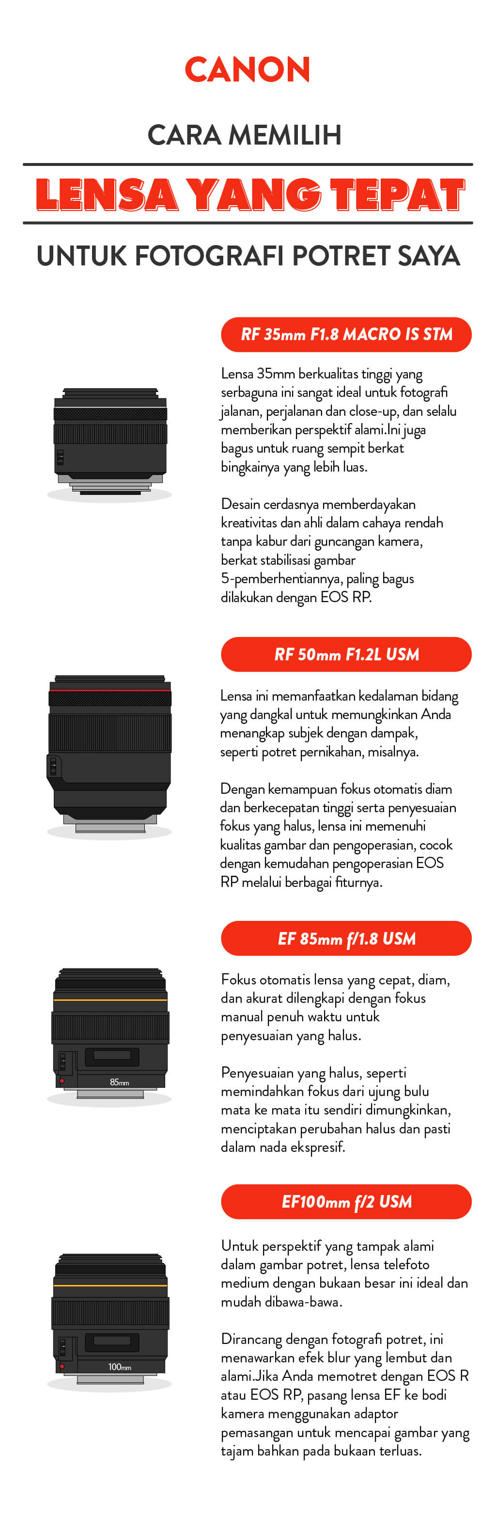 Memilih lensa yang tepat bisa jadi menakutkan. Mulailah dengan memikirkan jenis foto yang saat ini Anda ambil. Kemudian gunakan infografis praktis ini untuk membantu Anda memilih lensa yang tepat untuk kebutuhan fotografi Anda.