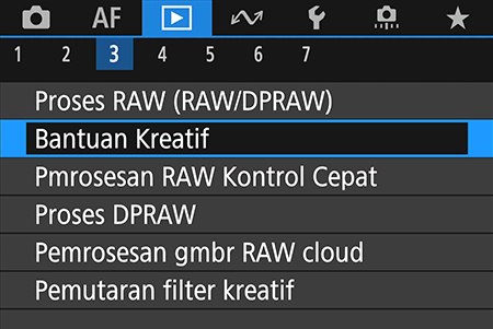 Creative Assist ada di blue menu, di mana yang lainnya, fungsi pemrosesan RAW dalam kamera berada.