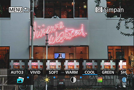 Anda juga dapat menerapkan efek AUTO (otomatis), yang direkomendasikan oleh kamera berdasarkan kondisi gambar.