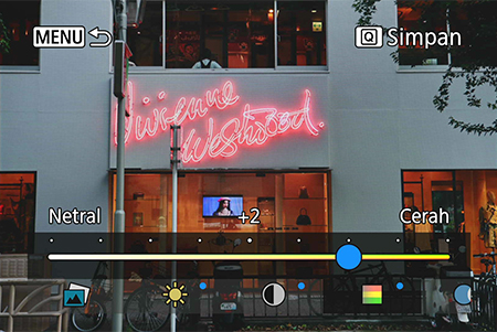 Meningkatkan saturasi, membuat tanda lampu neon terlihat lebih jelas.