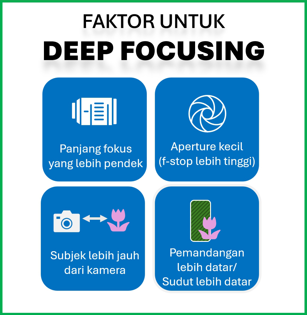 Panjang fokus yang pendek dan aperture sempit untuk menghasilkan deep focus