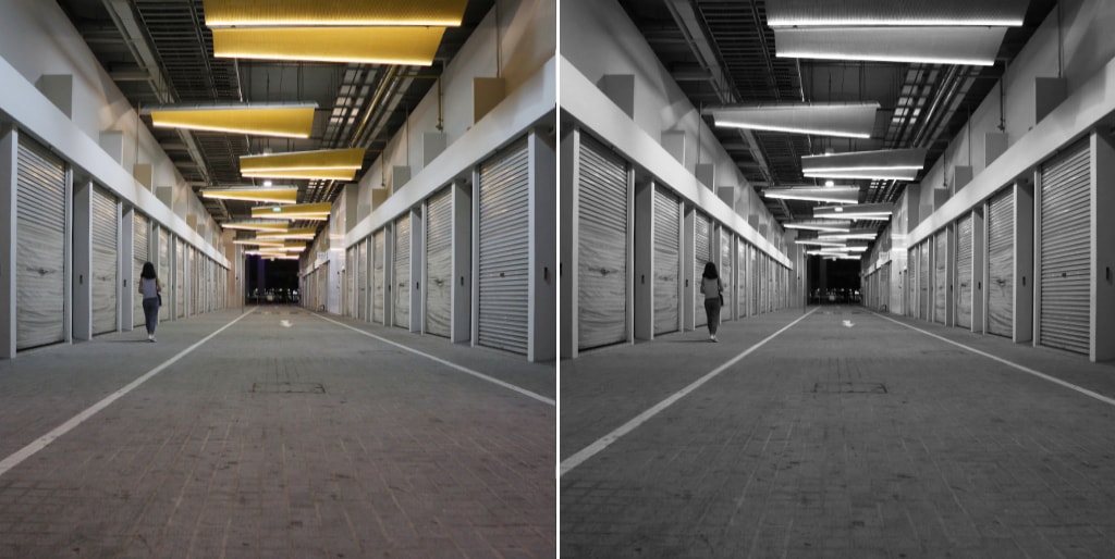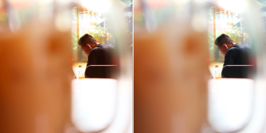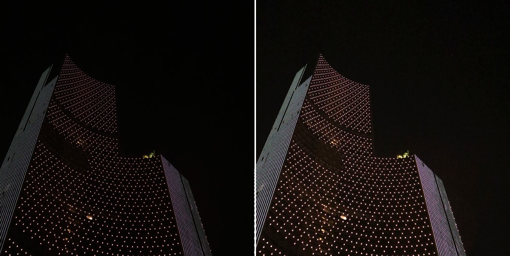 Anda juga bisa memilih untuk membuat warna warm atau cool dalam mode Creative Assist. Pada contoh di bawah, gambar sebelah kiri diambil dengan setelan warm yang ditingkatkan. Gambar sebelah kanan menggunakan setelan cool.