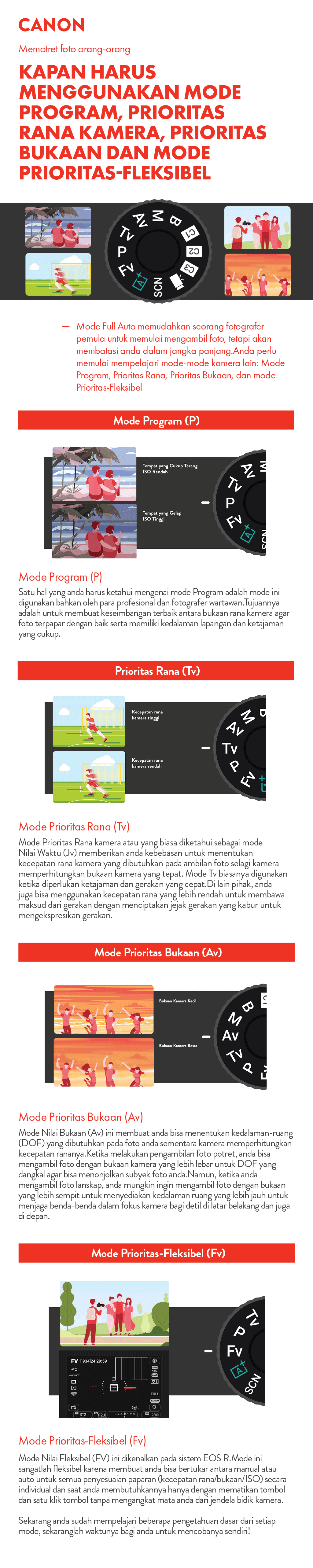 Mode Nilai Fleksibel (Fv) ini dikenalkan pada sistem EOS R.Mode ini sangatlah fleksibel karena membuat anda bisa bertukar antara manual atau auto untuk semua penyesuaian paparan (kecepatan rana/bukaan/ISO) secara individual dan saat anda membutuhkannya hanya dengan mematikan tombol dan satu klik tombol tanpa mengangkat mata anda dari jendela bidik kamera.