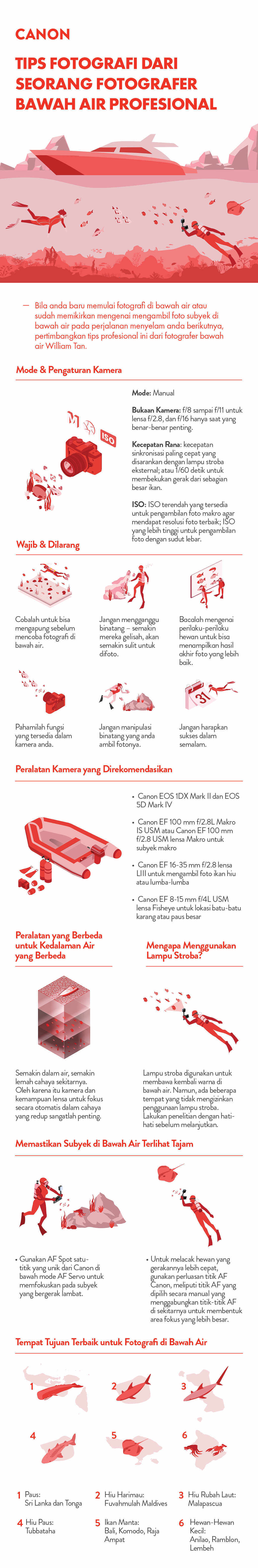 Fotografi di bawah air lebih dari sekedar membawa kamera ke dalam air dan mengambil fotonya segera.Ada persiapan yang diperlukan, pengetahuan akan binatang dan kemampuan fotografi yang sesuai, dibutuhkan untuk memastikan kualitas terbaik dari foto di bawah air anda.Fotografer di bawah air yang terkenal William Tan mengajari kita caranya.