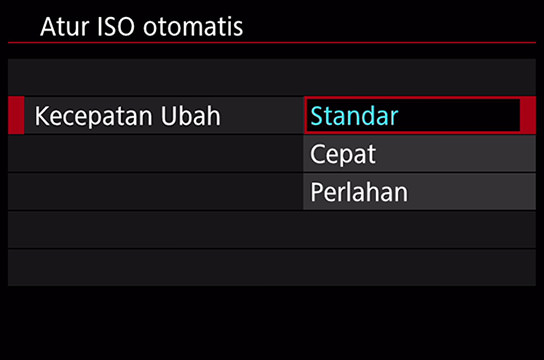 Apabila kecepatan ISO ditetapkan ke [Auto], Anda dapat menetapkan kisaran perubahan ke "Standard", "Fast" atau "Slow" secara mudah dan intuitif.
