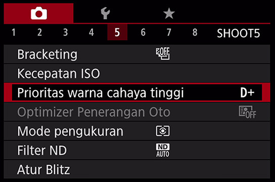 Kamera ini dilengkapi dengan mode Highlight Tone Priority yang sudah akrab dengan para pengguna EOS. Ini adalah fungsi efektif apabila Anda ingin mempertahankan detail, meskipun hanya sedikit di area dengan highlight.