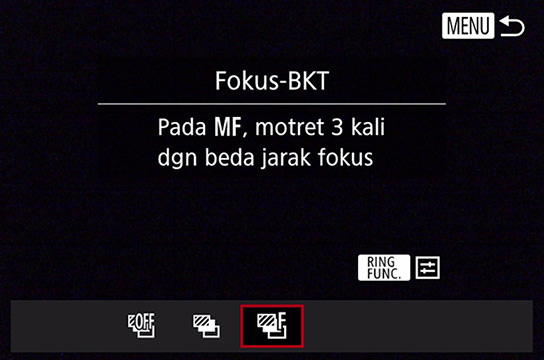 Fungsi Bracketing juga mencakup fungsi Focus Bracketing yang mengubah posisi fokus, sekaligus melakukan pemotretan beruntun selama pemfokusan manual.