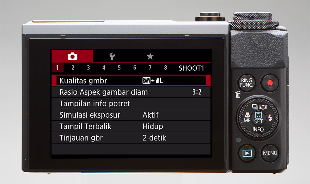 Fitur baru lainnya pada PowerShot G7 X Mark II yaitu tampilan menu yang sama seperti kamera seri EOS. Para pengguna EOS akan merasa nyaman dengan pengoperasian menu. Penalaan halus ini bisa dibilang menghasilkan tingkat kelengkapan yang jauh lebih tinggi ke operabilitas kamera.