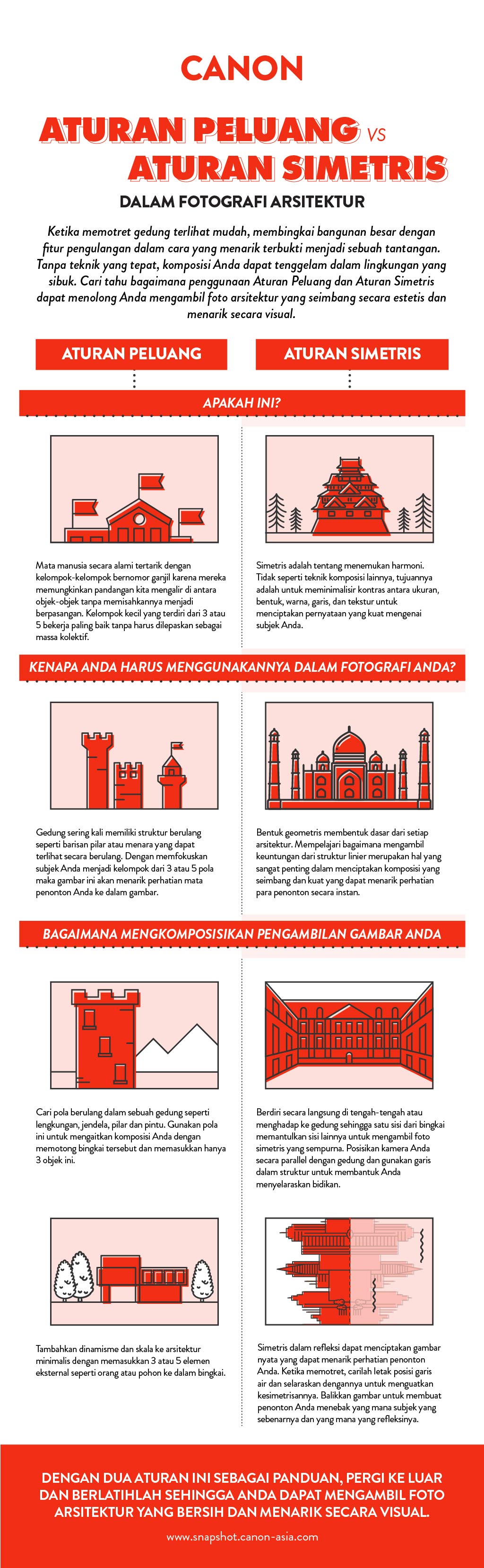 Komposisi merupakan kunci dari fotografi arsitektur. Hal ini dikarenakan kegagalan berpikir tentang bagaimana subjek Anda ditempatkan dalam bingkai berarti foto arsitektur Anda dapat terlihat berantakan dan tidak menarik. Gunakan Aturan Peluang dan Aturan Simetris untuk meningkatkan kemampuan Anda dan memotret gambar arsitektur yang menakjubkan.