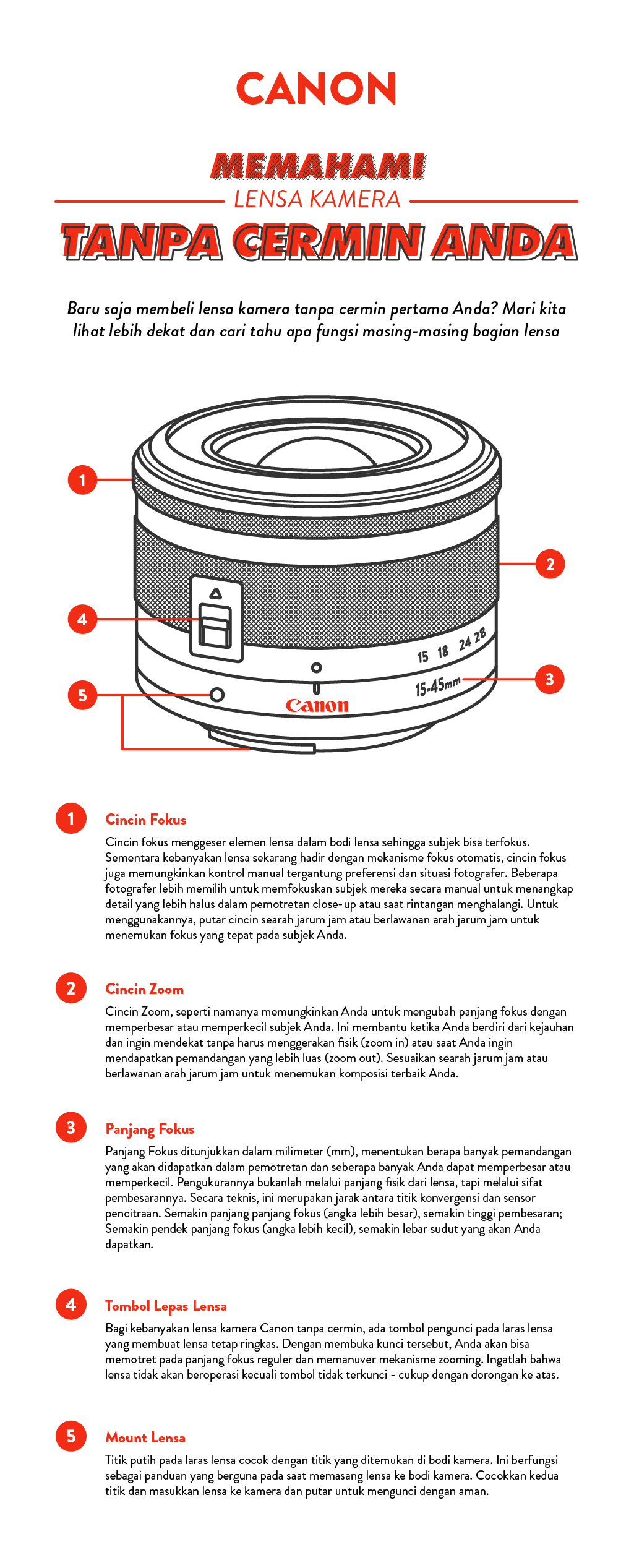 Lihat lebih dekat pada antarmuka lensa kamera Canon tanpa cermin dan temukan fungsi masing-masing bagian.