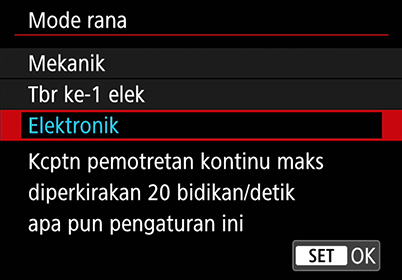 2. Mode Shutter (Mode Rana): Electronic shutter (Rana elektronik)