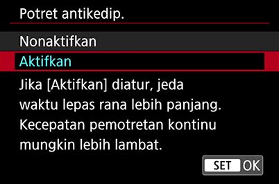 Pemotretan anti-flicker (tanpa kerlipan): Disabled (Dinonaktifkan)