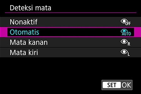Pengaturan eye detection (pendeteksian mata): Tergantung pada tujuan Anda