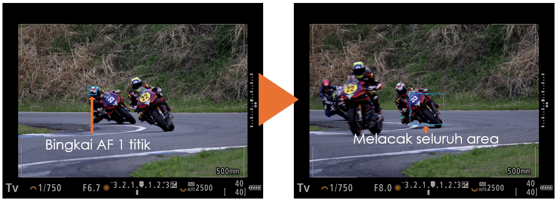 Apabila pengguna memilih mode area AF yang lebih kecil, seperti 1-point AF, bingkai AF masih dapat mendeteksi (“menangkap”) subjek di sekitar dan melacaknya pada seluruh area gambar, meskipun subjek bergerak keluar area AF. Hal ini juga berlaku untuk subjek non-manusia, seperti burung dan kendaraan bermotor.