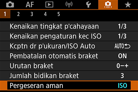 Fungsi Safety Shift terletak di menu oranye pada kamera yang lebih canggih.