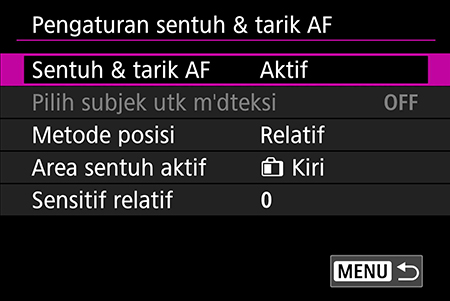 Lokasi: Menu merah muda → “Pengaturan Sentuh & tarik AF”