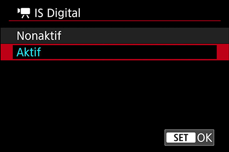 Lokasi: Menu merah → IS (Image Stabilizer) mode → Digital IS