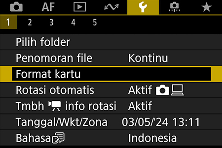 Lokasi: Menu kuning → “Format kartu”