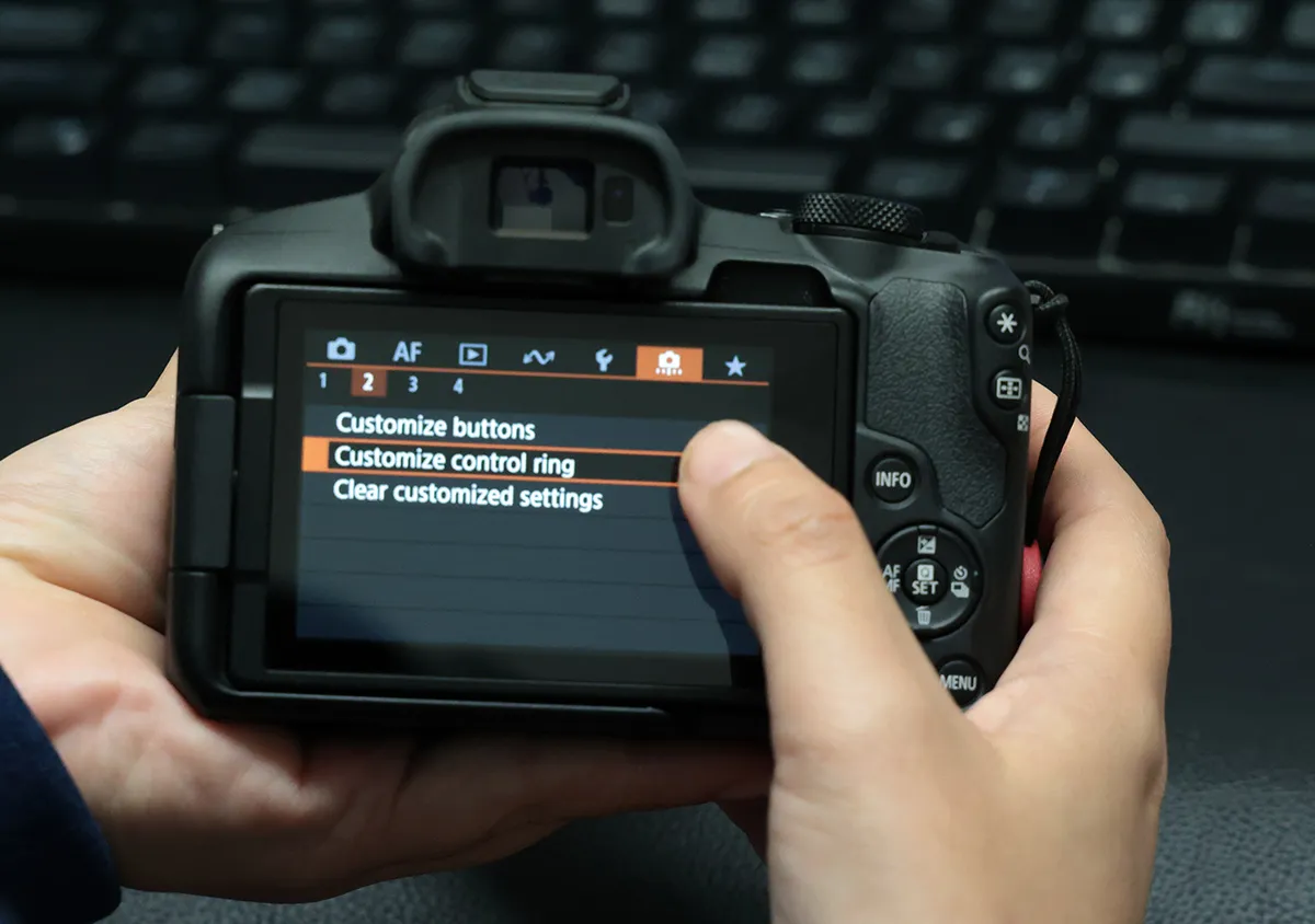 Anda dapat menentukan, apa yang ingin Anda kendalikan oleh cincin kontrol ini di menu “Sesuaikan cincin kontrol”. Banyak fotografer menggunakannya sebagai cara cepat untuk mengubah pengaturan pencahayaan yang paling sering mereka akses.