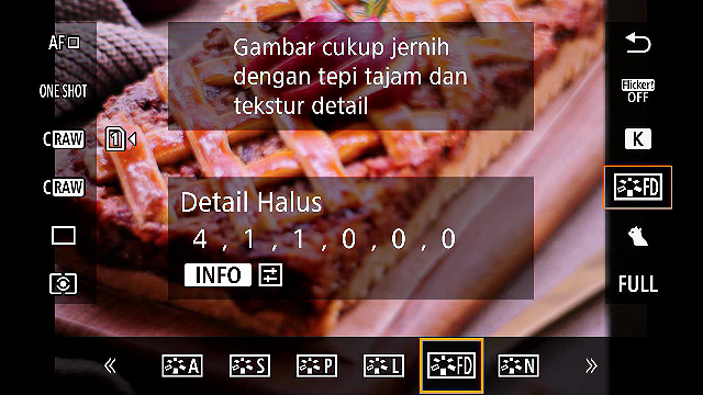 Saya menggunakan pengaturan “Fine Detail” pada Picture Style untuk mendapatkan detail makanan yang lebih baik.