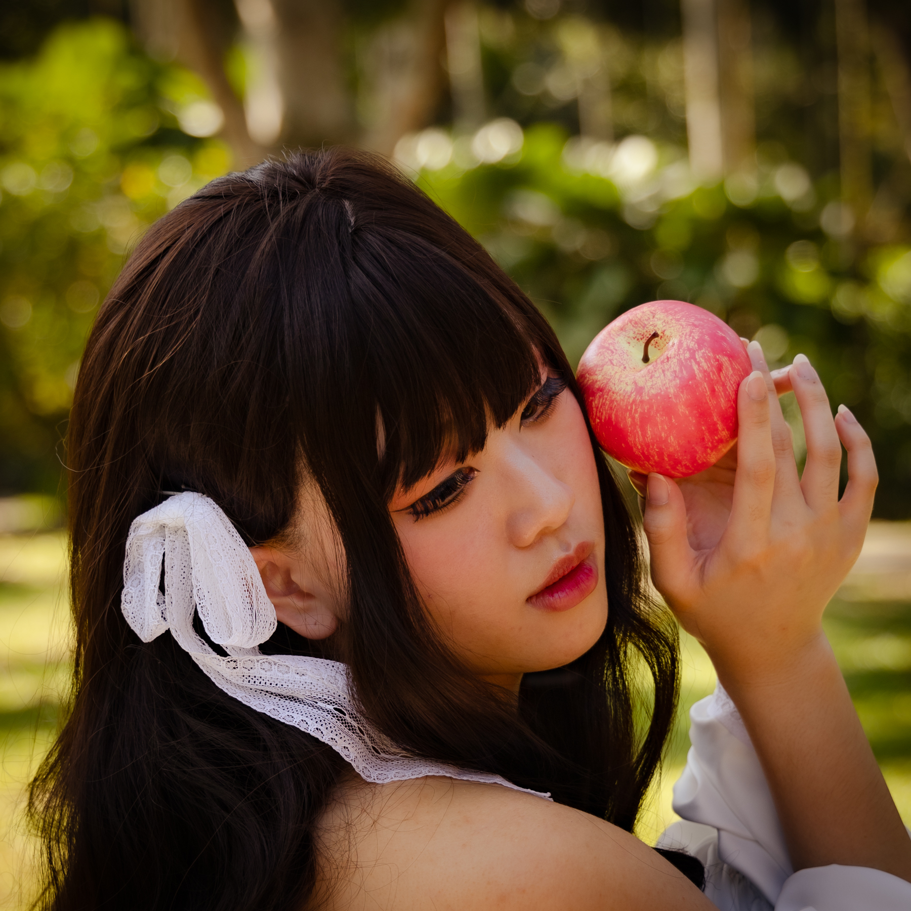 The beauty and the apple under the sunny day. Very first portrait outing with my RP and RF24-105mm lens. The sunray and the apple refection on the face of the girl give a 'reddish' look.