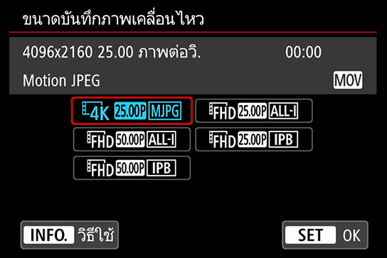 หัวข้อ 10: ใช้ได้กับการถ่ายภาพเคลื่อนไหวแบบ 4K ที่ 30p