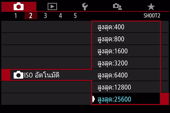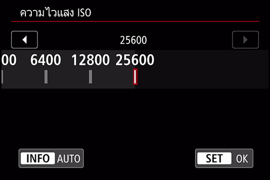 เราสามารถตั้งค่าความไวแสง ISO สูงสุด 25600 ในโหมด ISO อัตโนมัติได้
