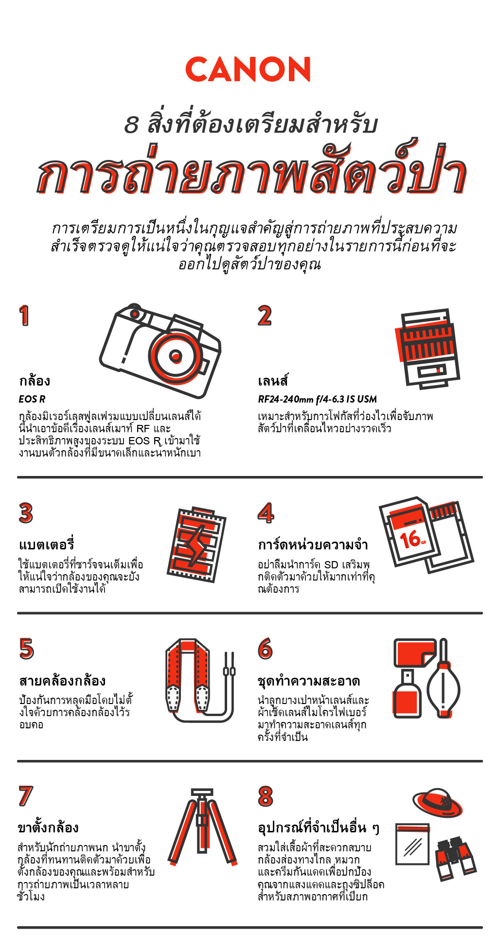 การเตรียมการเป็นหนึ่งในกุญแจสำคัญสู่การถ่ายภาพที่ประสบความสำเร็จตรวจดูให้แน่ใจว่าคุณตรวจสอบทุกอย่างในรายการนี้ก่อนที่จะออกไปถ่ายภาพสัตว์ป่า
