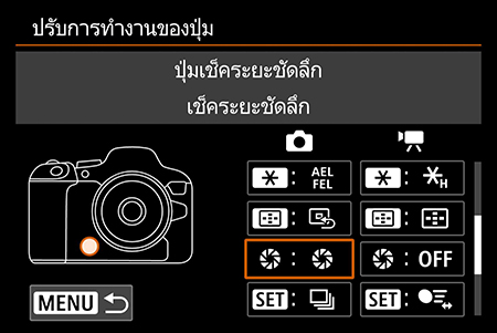 กล้องบางรุ่น เช่น EOS R6 Mark II จะมีปุ่มเช็คระยะชัดของภาพมาให้อยู่แล้ว แต่คุณก็สามารถกำหนดฟังก์ชั่นนี้ให้กับปุ่มอื่นได้ด้วยเช่นกัน สำหรับกล้องรุ่นอื่นๆ คุณต้องเลือกว่าจะใช้ปุ่มใด