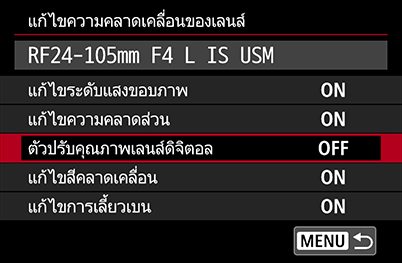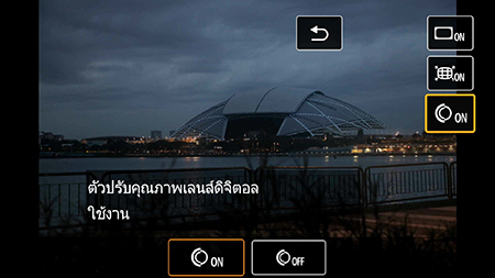 ข้อควรรู้: สำหรับระบบ EOS R การเปิด DLO ไว้จะไม่ส่งผลต่ออัตราการถ่ายภาพต่อเนื่อง