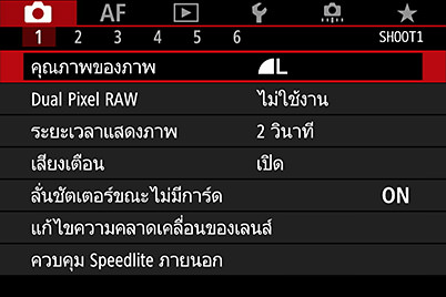 หน้าจอเมนูบน EOS 5D Mark IV