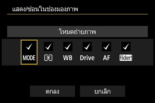 จุด AF ที่วางซ้อนในภาพจะสว่างเป็นสีแดงเมื่อกำหนดโฟกัสได้แล้ว เพื่อให้มองเห็นโฟกัสได้ง่ายในสถานที่ที่มีแสงน้อย