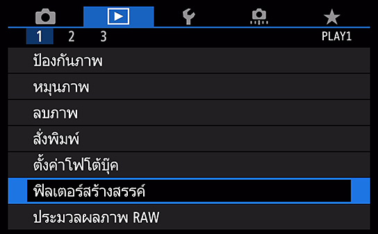 หากคุณถ่ายภาพเสร็จเรียบร้อยแล้ว สามารถตั้งค่าฟิลเตอร์สร้างสรรค์ได้จากเมนูเล่น โดยสามารถใช้เวลาในการเลือกเอฟเฟ็กต์ที่เหมาะสมกับภาพถ่ายได้จากเอฟเฟ็กต์ทั้ง 7 ประเภทที่มีให้เลือก