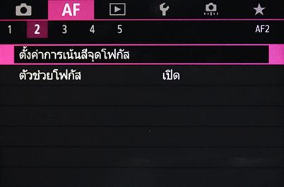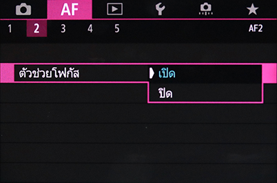 ในกล้อง EOS R, EOS R5 และ EOS R6 คุณจะพบฟังก์ชั่น MF Peaking และ Focus Guide ได้ในเมนู AF 2