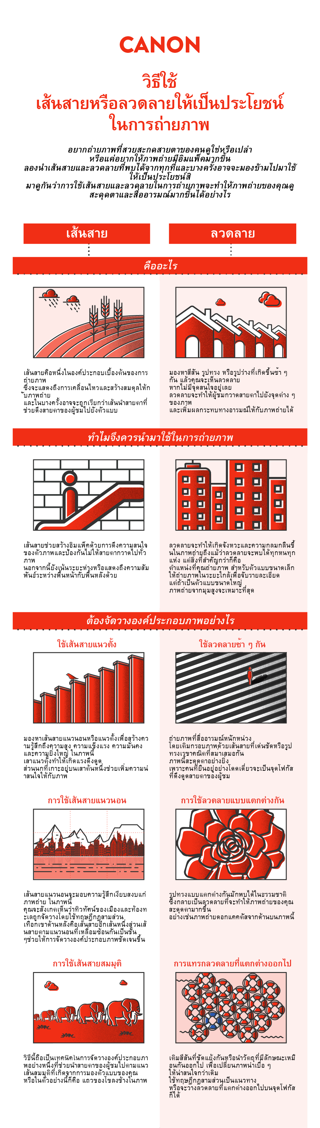เรียนรู้วิธีการใช้เส้นหรือลวดลาย ช่วยให้คุณจัดองค์ประกอบภาพด้วยเอฟเฟกต์ภาพมากขึ้น เพื่อให้คุณได้ภาพถ่ายที่สะดุดตาและน่าทึ่ง