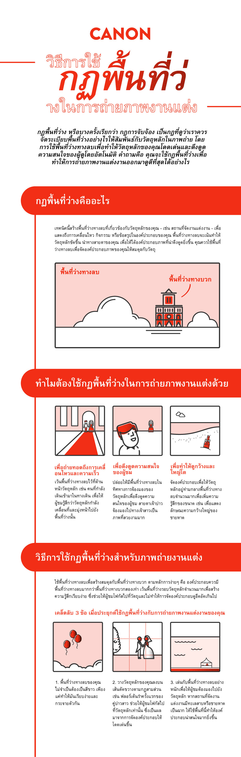 กฏพื้นที่ว่างสามารถปรับปรุงภาพถ่ายงานแต่งงานของคุณได้อย่างไร ให้อินโฟกราฟิกนี้แนะนำคุณคุณเกี่ยวกับวิธีการใช้เทคนิคนี้ในการจัดองค์ประกอบของภาพให้โดดเด่นขึ้นและน่าสนใจยิ่งขึ้นสำหรับงานแต่งงาน