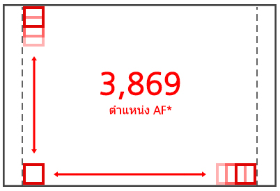 - เลือกพื้นที่ AF ด้วยตนเอง: เลือกได้สูงสุดถึง 3,869 ตำแหน่ง