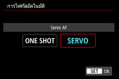 - ขณะถ่ายภาพด้วย Live View/EVF เมื่อ Servo AF ทำงานอยู่ กรอบ AF จะเป็นสีน้ำเงิน หากกรอบเป็นสีเขียว แสดงว่าคุณกำลังใช้โหมด One Shot AF