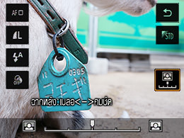 แตะแถบเลื่อนเพื่อปรับระดับความ “เบลอ” หรือ “คมชัด” ของภาพที่แสดง คุณสามารถดูผลภาพได้บนหน้าจอ Live View